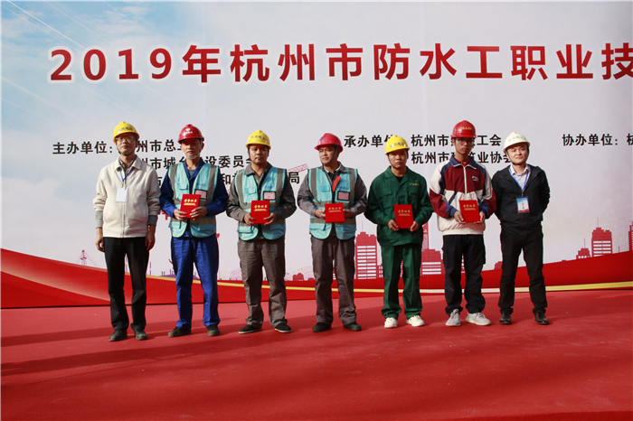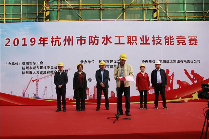 为弘扬工匠精神,厚植工匠文化,提高建筑产品和服务质量,推动杭州市高技能人才队伍建设,10月28、29日,2019年杭州市防水工职业技能竞赛在AG贵宾会集团萧山三号地块禹洲地产项目部举行。市建委副主任董天乐,市总工会副主席张坚申,市人社局、市建设工会、市城建培训中心、市建协等有关负责人及AG贵宾会集团董事长来连毛、党委书记副董事长郑育辉出席开幕式并现场观摩。